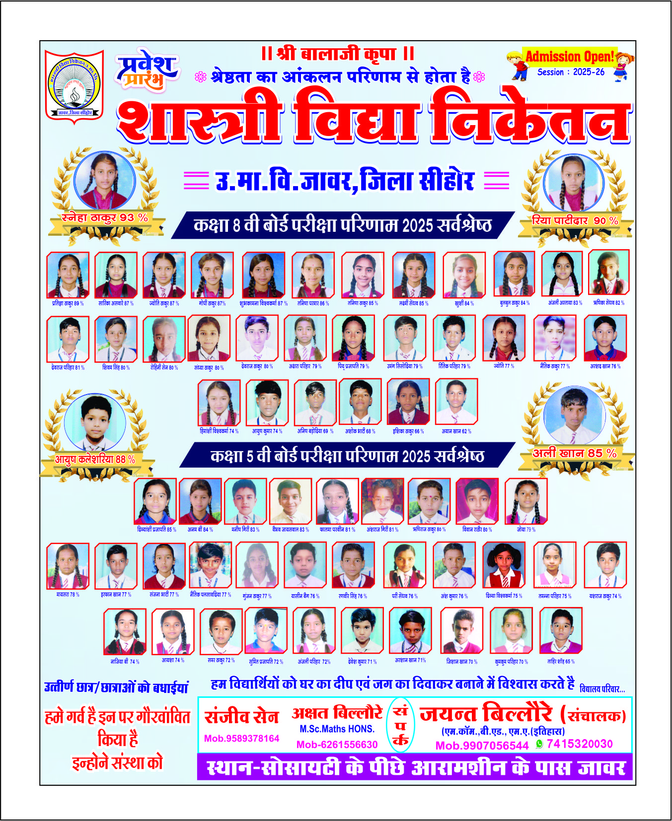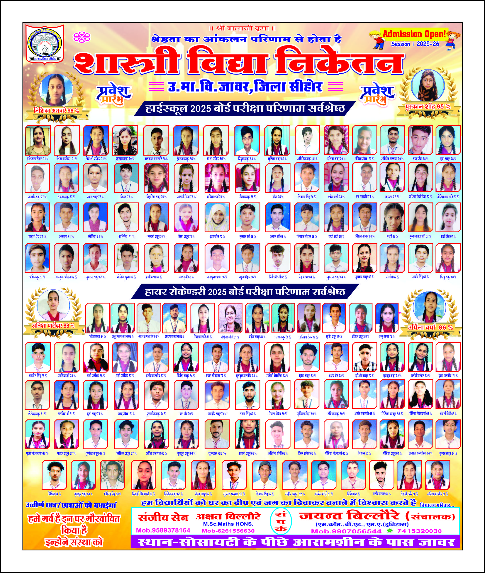 संस्था शास्त्री विद्या निकेतन हायरसेकण्ड्री स्कूल जावर नगर की सर्वश्रेष्ठ संस्थानों में से एक है l संस्था ने कई स्तरों पर एक बेहतर शिक्षा व्यवस्था का हमेशा से ही प्रचार प्रसार किया है l जिसके चलते कई बार जिलें स्तर पर संस्था संचालक महोदय का सम्मान बड़े स्तरों पर किया गया है l जिसके अनेक उदाहरण है जैसे की जिले का सर्वश्रेष्ठ स्वच्छ विद्यालय पुरूस्कार माननीय कलेक्टर महोदय द्वारा सम्मानित , बोर्ड परीक्षा परिणाम में सर्वश्रेष्ठ प्रदर्शन करते हुए विगत 11 वर्षों से मुख्यमंत्री मेघावी छात्र योजना के तहत प्रतिवर्ष विद्यालय के कई छात्र/छात्राओं को मध्यप्रदेश शासन की और से लैपटॉप क्रय हेतु प्रति छात्र को 25000रु की राशि प्रेषित की गई है l वहीँ सामान्य ज्ञान प्रतियोगिता में जिलें में द्वितीय स्थान प्राप्त करने वाली छात्रा भी सम्पूर्ण आष्टा विकासखंड में एक मात्र विद्यालय "निकेतन" की छात्रा ने अपना स्थान बनाया एवं मुख्यमंत्री के "कॉफ़ी विथ सीएम'' कार्यक्रम में अपना स्थान बनाया l संस्था हमेशा से विद्यार्थी हीत में कार्य करती आ रही है l छात्र/छात्राओं एवं सम्मानीय पालकगणों के विश्वास पर हमेशा से ही संस्था 100% खरी सिद्ध हुई है एवं आगे भी निरंतर इसी भावना से कार्य करने के लिए संपूर्ण संस्था "निकेतन" कटिबद्ध है ,,,,,,, आपका अपना संचालक जयंत बिल्लोरे